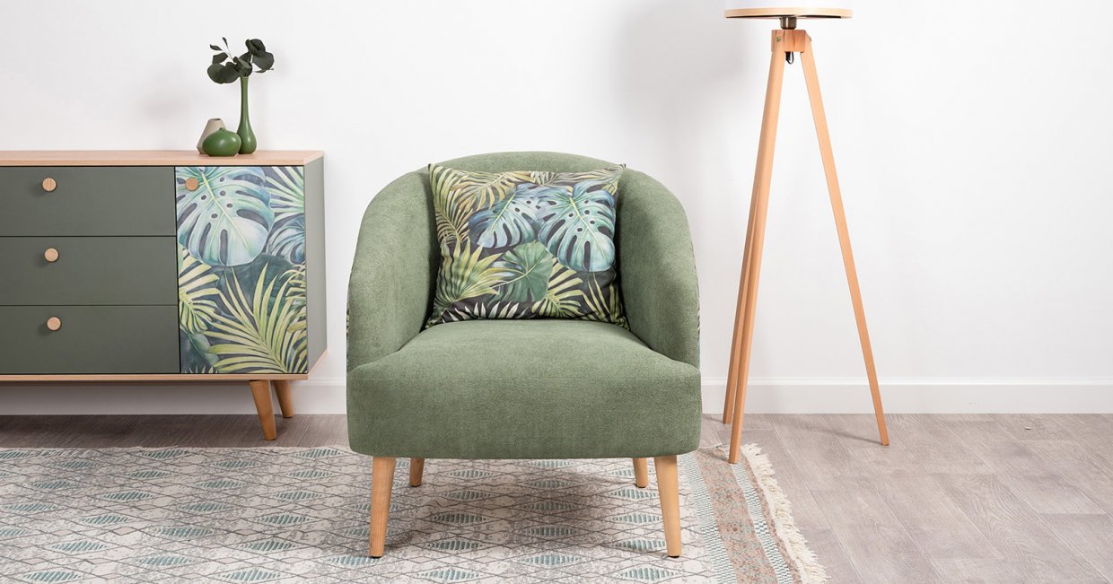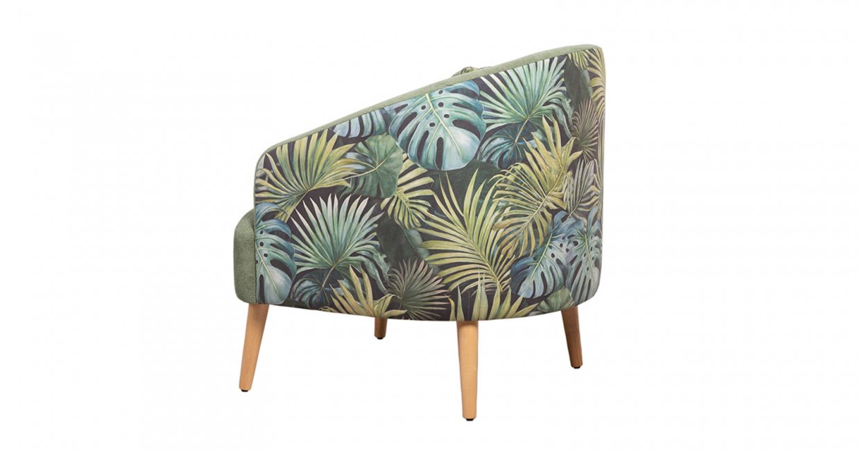 Маттиас — оригинальное кресло готовое стать акцентом в интерьере. Яркий тропический принт «монстера» на спинке мгновенно сделает комнату живой и современной.