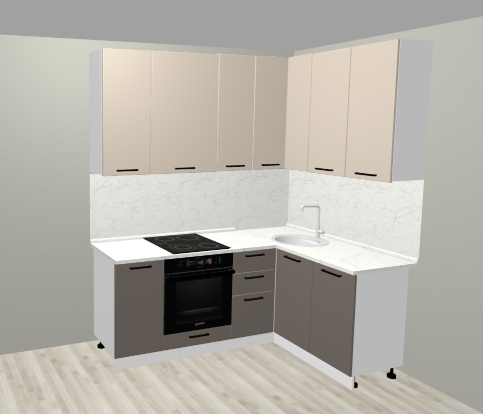 В стоимость не входит, раковина, смеситель, техника, фартук, плинтуса и закрывающий комплект (глухая панель нижнего бокового модуля. можно докупить отдельно)