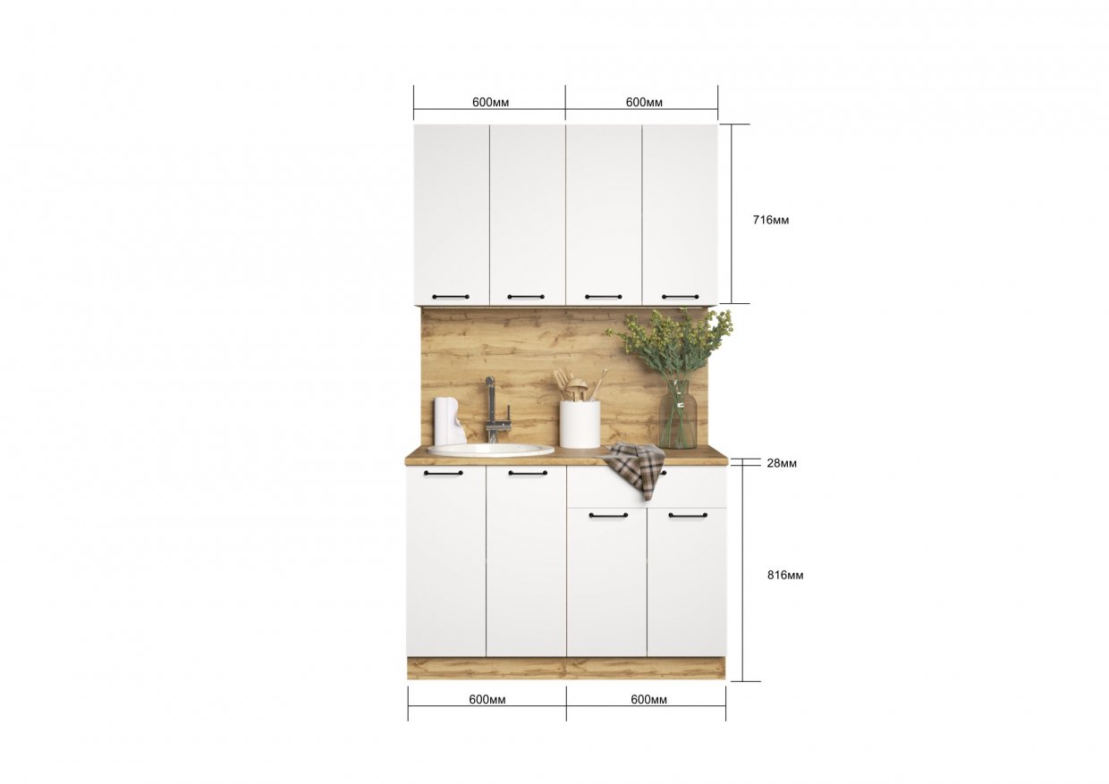 Артикул: A64480КУхонный гарнитур Валерия 1800 мм вотан/белый (Сурская)