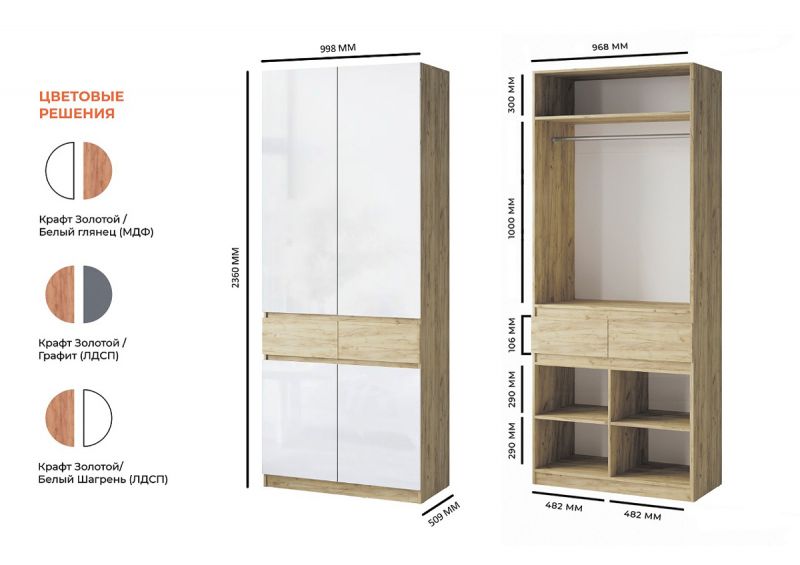 Артикул: A59250Шкаф 2000 мм Турин ЛДСП крафт/белый шагрень (ВВР)