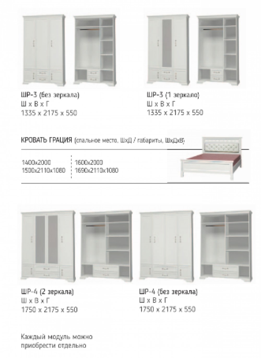 Артикул: A25016Шкаф 1700 мм ШР-4 без зерк.. ГРАЦИЯ (лак) Белый/Белый (БМ)