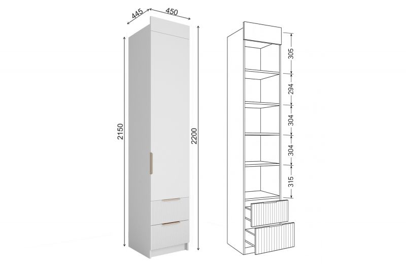 Артикул: A58334Шкаф Лавис ШД 450.1, белый/графит (ДСВ)