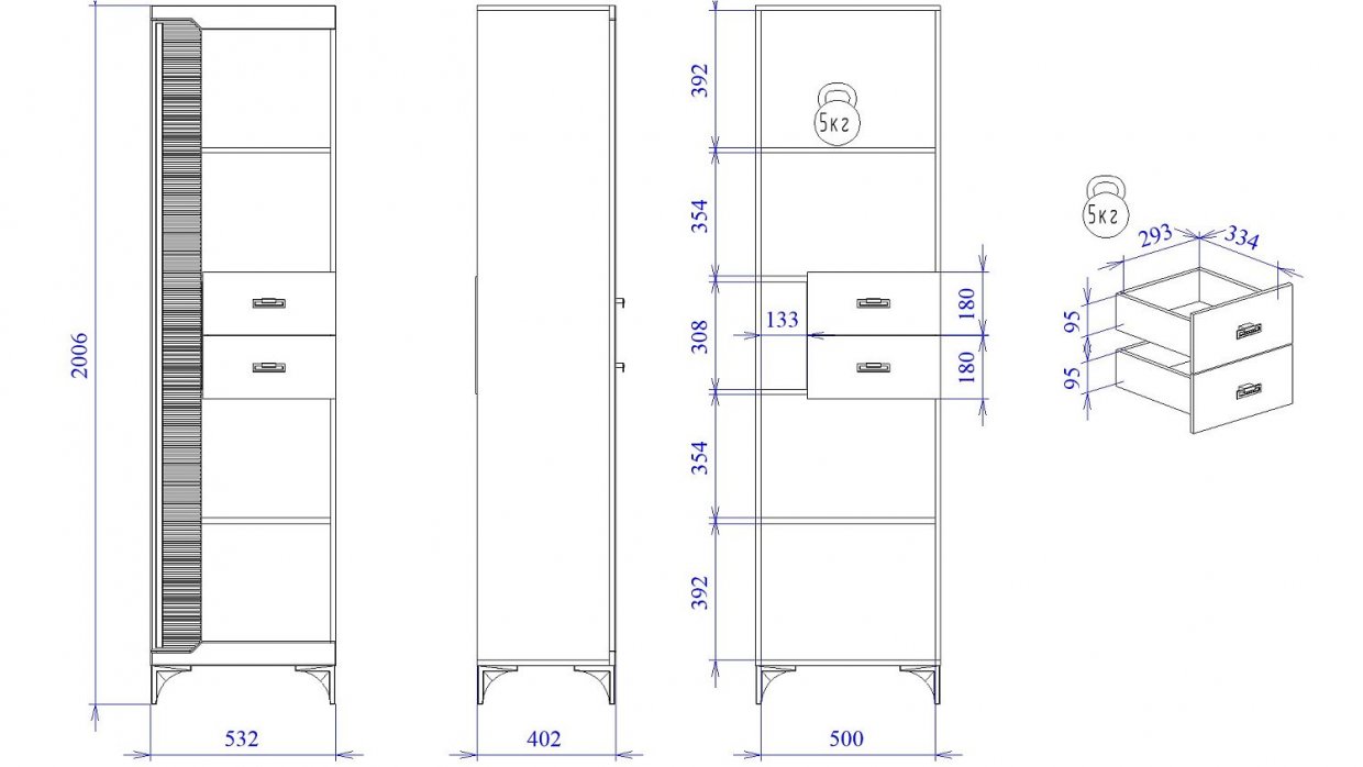 Артикул: A64855Шкаф Мадрид 2000 мм без зеркала, кашемир (Текс)