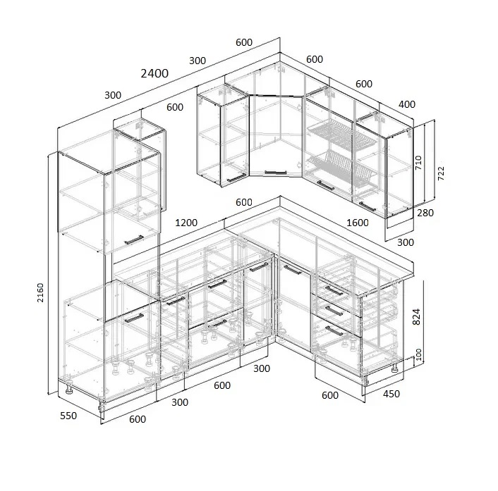 Артикул: A58379Угловой кухонный гарнитур Дели 2400*1600 мм Sanvut